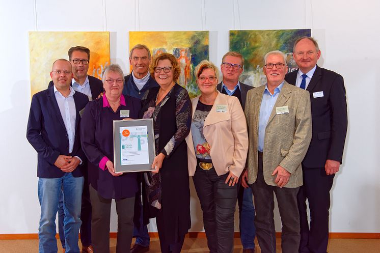 Leuchtturmprojekt 2018 Laurentius-Lädchen Nammen (v. l.): Lars Theim, Stefan Mohme, Hertha Wiese, Johannes Nakath, Heike Bünte, Kerstin Zann, Jürgen Zahn, Karl-Heinz Daum und Dr. Stephan Nahrath, Geschäftsführer Westfalen Weser Energie.
