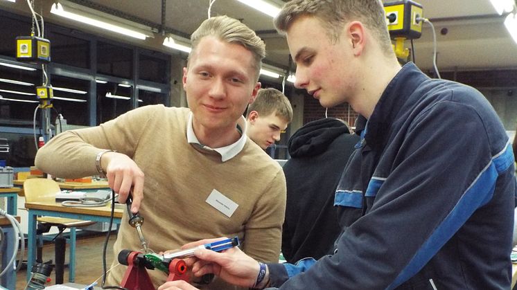 „So machen wir die Energiewende“ lautete der Impulsvortrag, in dem die Jugendlichen sich mit den Berufsperspektiven auseinandersetzten, die durch die Entwicklung der Erneuerbaren Energien derzeit im Entstehen sind. In der Ausbildungswerkstatt von Westfalen Weser Netz in Kirchlengern konnten sie dann auch ihre praktischen Fähigkeiten unter Beweis stellen und im Schülerlabor der Universität Paderborn gab es Übungen zum Thema „Total vernetzt“. Abschließend wurde die Elektromobilität beleuchtet, ihre Alltagstauglichkeit und die Möglichkeiten in Bezug auf die Umsetzung der Energiewende.