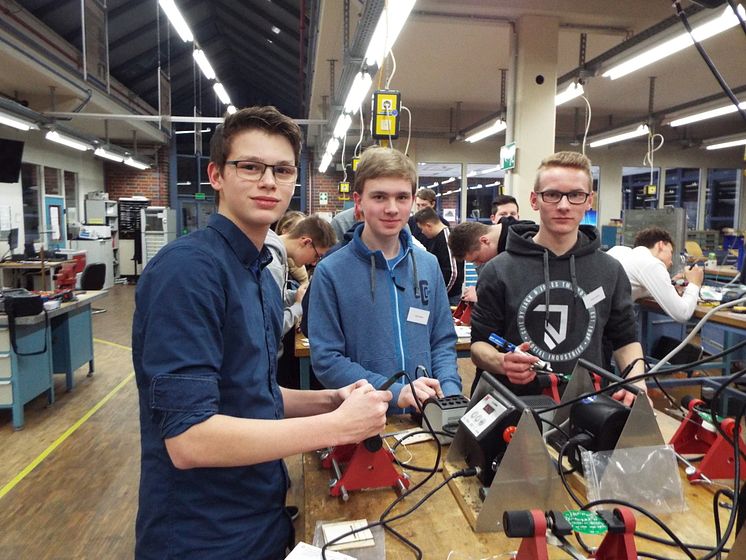 „So machen wir die Energiewende“ lautete der Impulsvortrag, in dem die Jugendlichen sich mit den Berufsperspektiven auseinandersetzten, die durch die Entwicklung der Erneuerbaren Energien derzeit im Entstehen sind. In der Ausbildungswerkstatt von Westfalen Weser Netz in Kirchlengern konnten sie dann auch ihre praktischen Fähigkeiten unter Beweis stellen und im Schülerlabor der Universität Paderborn gab es Übungen zum Thema „Total vernetzt“. Abschließend wurde die Elektromobilität beleuchtet, ihre Alltagstauglichkeit und die Möglichkeiten in Bezug auf die Umsetzung der Energiewende.