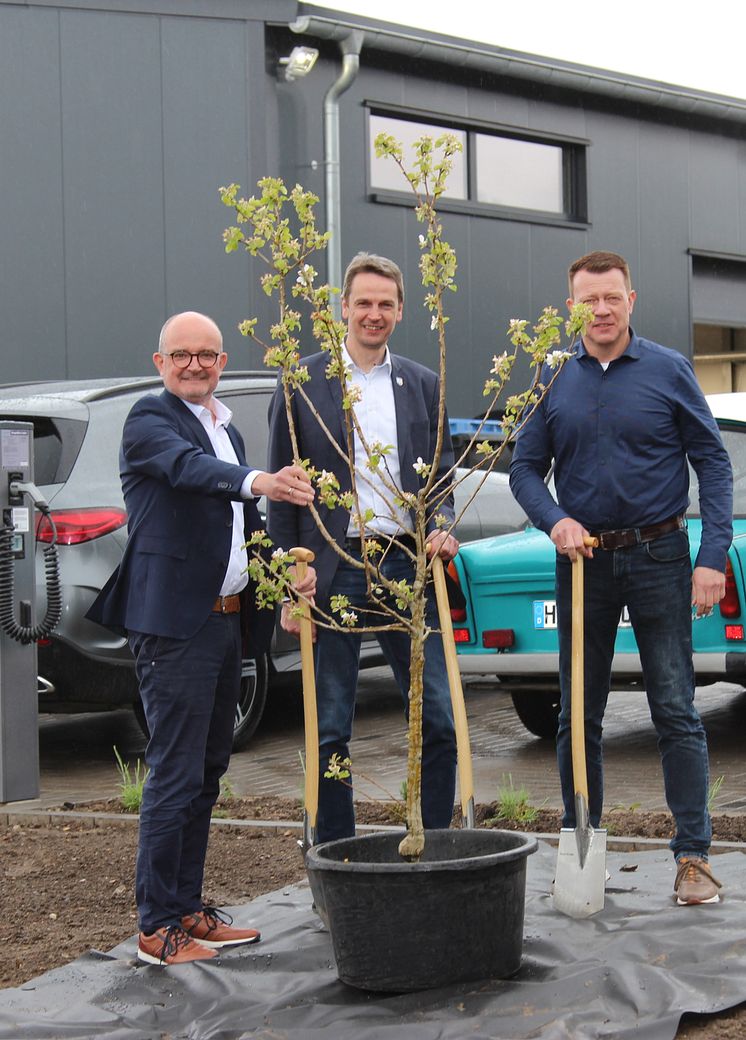 Westfalen Weser setzt weiter auf regionale Nähe und baute eine neue Betriebsstelle in Lauenstein in der Salzhemmendorfer Straße. Damit gewährleistet der regionale Netzbetreiber weiterhin die hohe Versorgungssicherheit für Erdgas und Wasser in Salzhemmendorf, Coppenbrügge, Emmerthal und Aerzen sowie die Strom- und Gasversorgung in der Gemeinde Extertal. Insgesamt investiert Westfalen Weser 1,2 Millionen Euro für den Neubau. Zur offiziellen Einweihung der Betriebsstelle pflanzten Bürgermeister Clemens Pommerening, Nachbarn sowie Geschäftsführung und Mitarbeitende von Westfalen Weser symbolisch zwei Obstbäume für eine nachhaltige Energieversorgung der Zukunft.