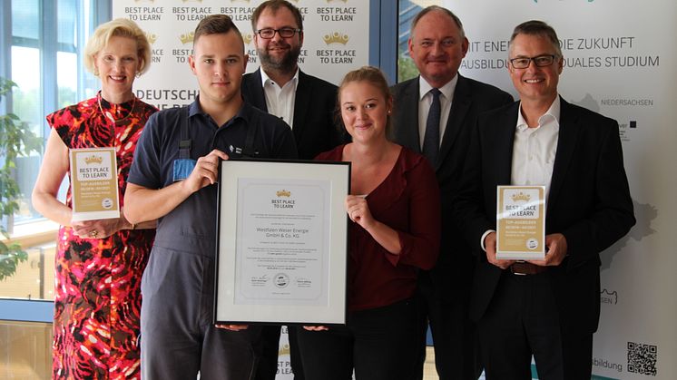Die Westfalen Weser Energie-Gruppe ist mit dem Gütesiegel „BEST PLACE TO LEARN“ ausgezeichnet worden. Das Siegel verspricht eine überdurchschnittlich gute betriebliche Ausbildung. Das online-Portal AUBI-plus hat alle wichtigen Aspekte der Ausbildung analysiert und 144 Azubis, ehemalige Azubis und Ausbildende des Unternehmens befragt. Das Ergebnis: Die WWE-Gruppe erhält das Prädikat „sehr gut.“