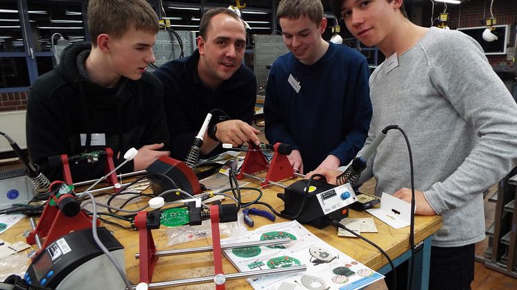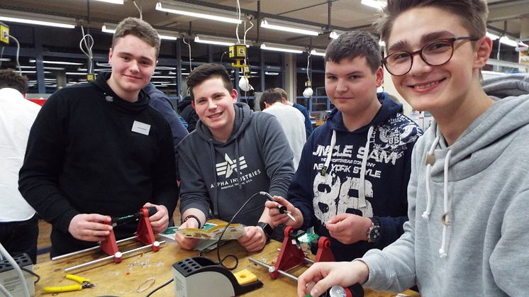 Tobias Remmel, Florian Scholz, Jannes Klingebiel und Leon Renziehausen vom KGS Salzhemmendorf nahmen am Energy Camp von Westfalen Weser Energie teil. In der Region entdeckten Schülerinnen und Schüler von Gymnasien und Gesamtschulen die aktuellen und zukünftigen Herausforderungen der Energieversorgung. Die jungen Teilnehmer heben die Kompaktheit der Themen und die Praxisnähe des Camps hervor.