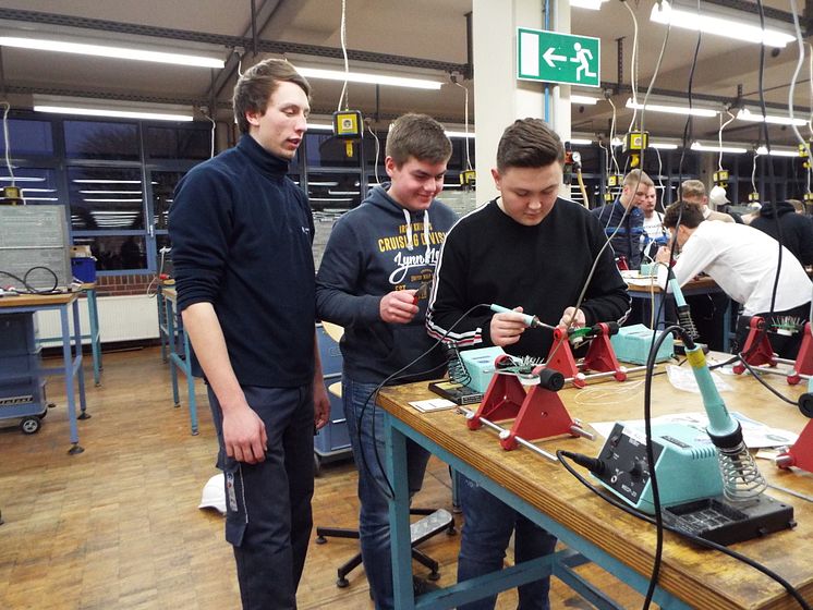 • Mit Spaß beim Girls' Day in Kirchlengern: Marco Sawatzki, 1. Ausbildungsjahr Westfalen Weser Energie und Sabine Plett, 7. Jhrg. Erich-Kästner-Gesamtschule Kirchlengern.